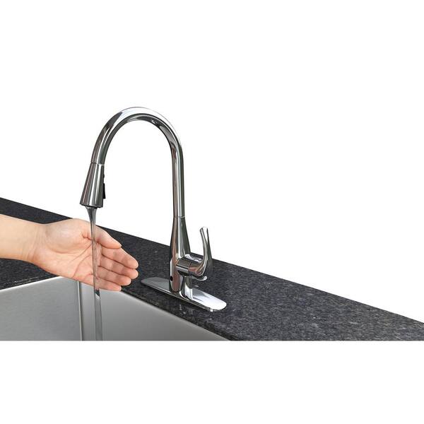 Flow Motion Activated Single Handle Pull Down Sprayer Kitchen Faucet In Chrome Ub7000cp The Home Depot Touchless Kitchen Faucet Brushed Nickel Kitchen Faucet Kitchen Faucet